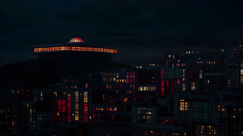 Dissimulée au croisement de la ruelle, une silhouette à la figure brumeuse s’appuie contre un mur, activant nonchalamment son bracelet multimédia, jusqu’alors invisible sur notre carte. La boule encastrée de l’appareil clignote, la reconnaissance faciale et vocale s’effectue, le rayon lumineux se déploie : aux côtés de cette femme, une grosse bulle rouge, comme un néon humain, s’impose dans mon chemin noir et révèle le visage de nul autre que la démente et rachitique Sixtine. Le souffle coupé, je n’ai pas le temps de faire demi-tour qu’apparaissent derrière elle, à ses trousses, comme une armée émergeant des ténèbres, Brandon Marsac ...